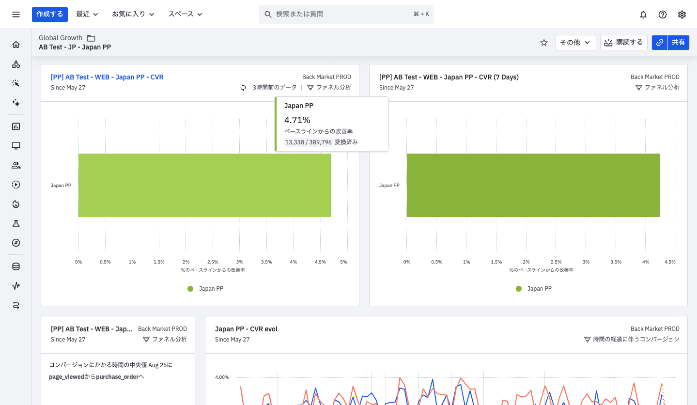 After launch, we ran a 50/50 traffic split for three months — enough time to reach sufficient volume in the Japanese market. The control was the existing production page: the global design with Japanese translation. The variant was the new localized page.