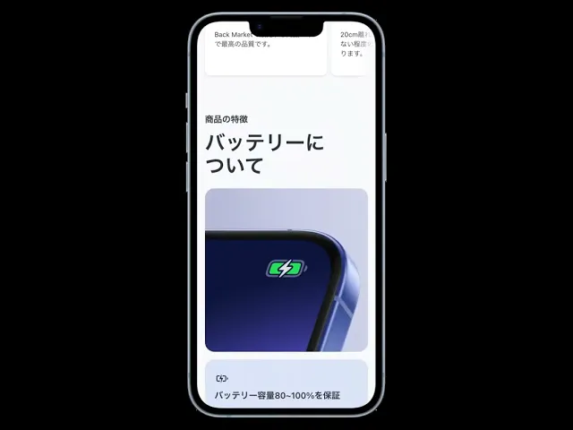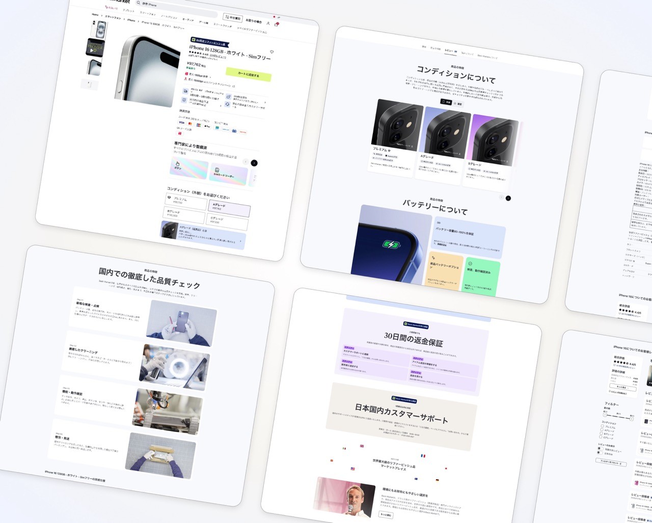 Kept the same mix-and-match model — one step per screen, low-context, conversion-focused. But we added Japan-specific content: condition details, battery health, warranty information, review context. Same interaction paradigm, more information.